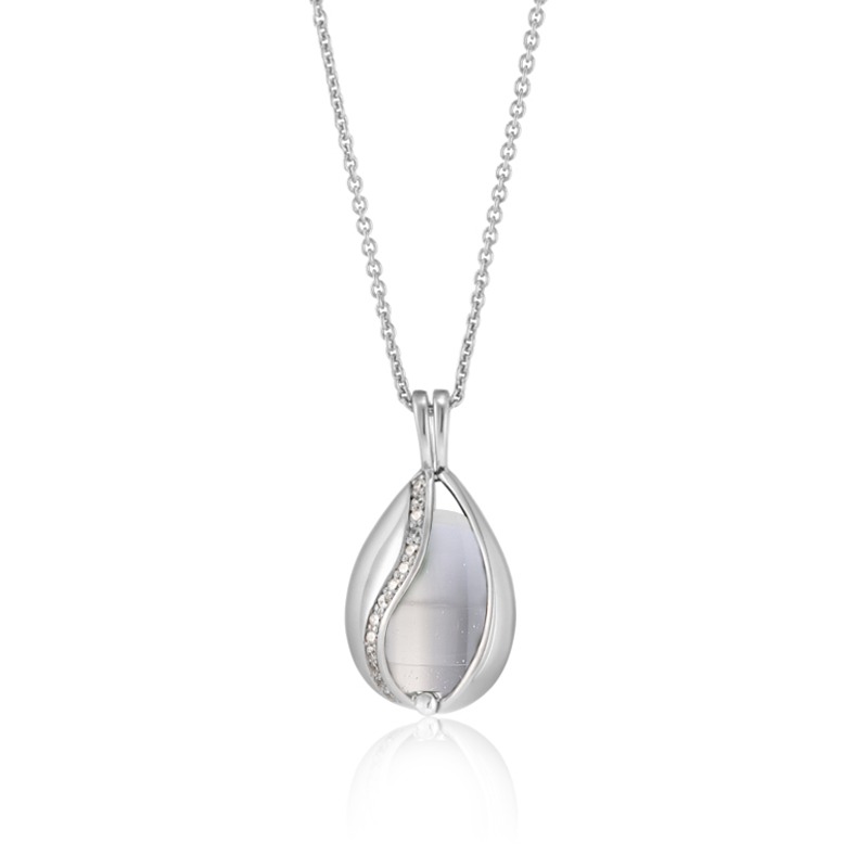 Halskæde i sølv med blankpoleret overflade, zirkonia og bjergkrystal. Du kan selv skifte sten i smykket.