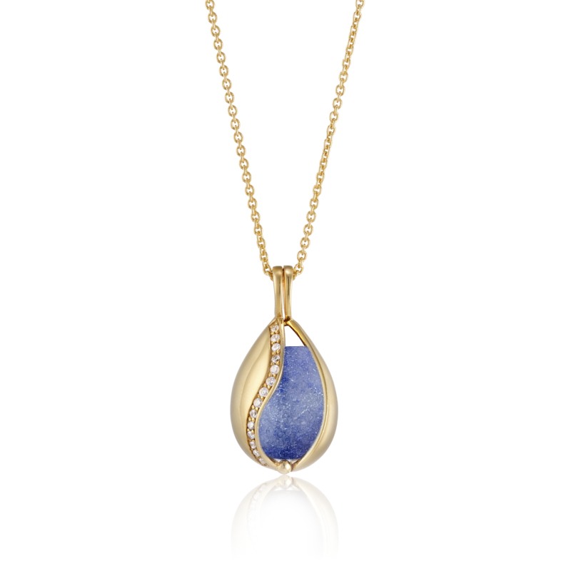 Smuk halskæde i forgyldt sølv med zirkonia og blå aventurin. Du kan selv skifte sten i smykket.