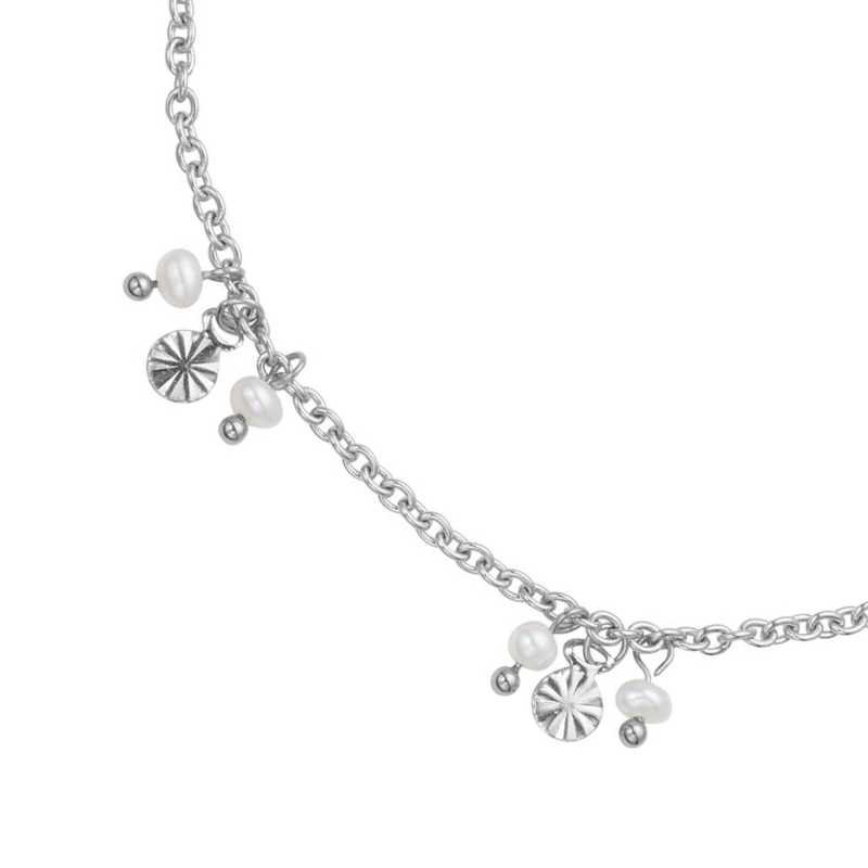 Feminin ankelkæde i stål med ferskvandskulturperle.
