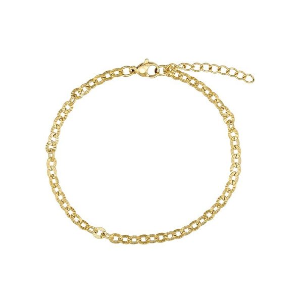 Armbånd i stål, belagt med 14 karat guld. Armbåndet er 18 cm + 3 cm forlænger.
