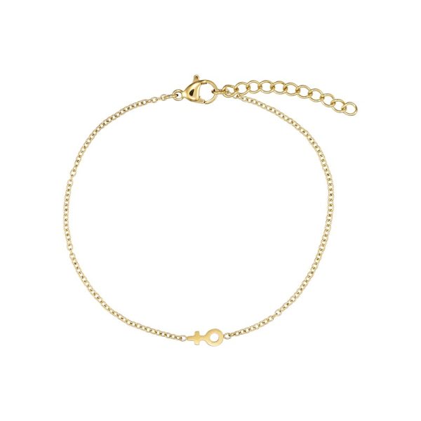 Armbånd i stål, belagt med 14 karat guld, med kvindetegn. Armbåndet er 18 cm + 3 cm forlænger.