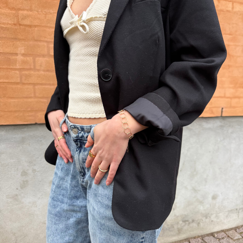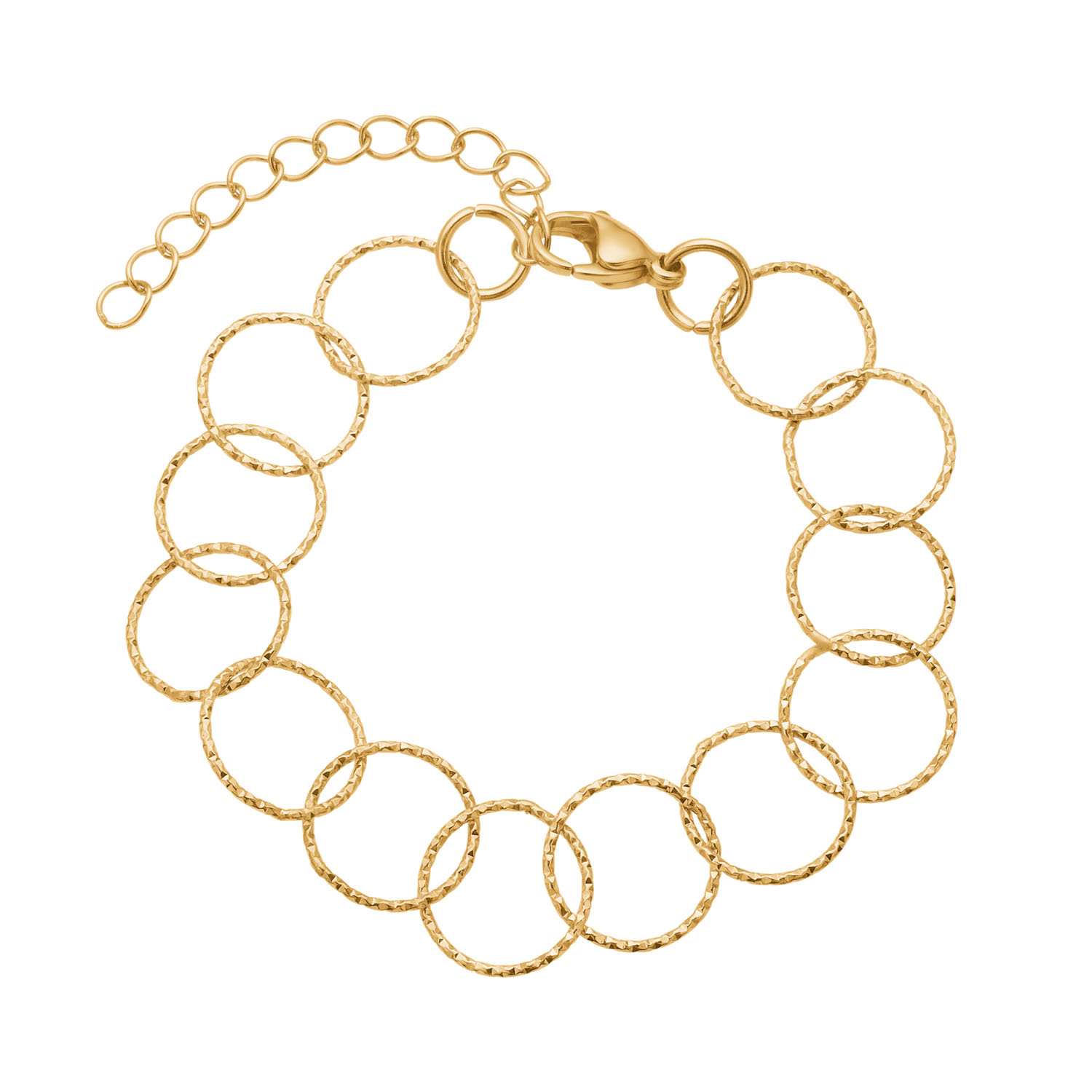 Stålarmbånd belagt med 14 karat guld. Armbåndet er 18 cm + 5 cm forlænger.