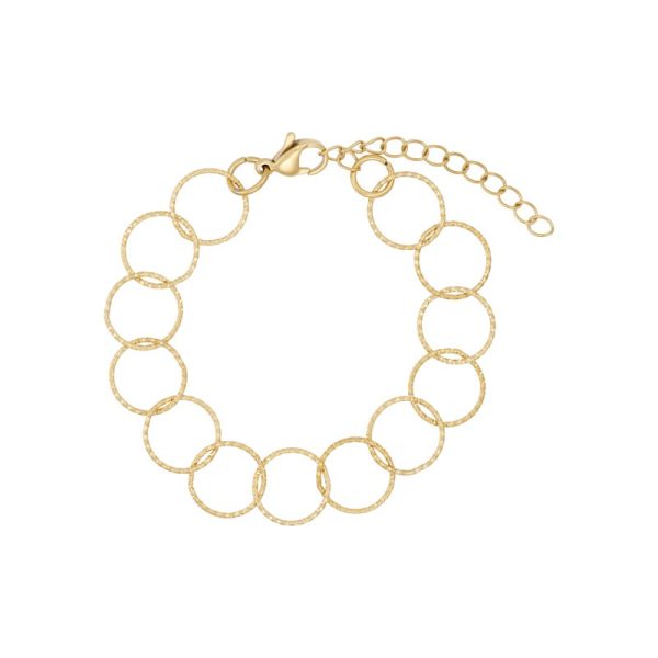 Stålarmbånd belagt med 14 karat guld. Armbåndet er 18 cm + 5 cm forlænger.