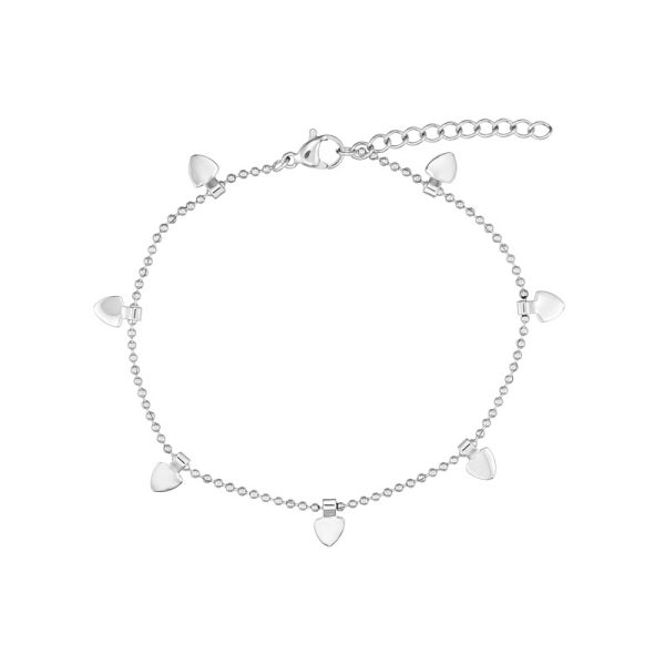 Armbånd i stål med fine hjerter. Armbåndet er 18 cm + 3 cm forlænger.