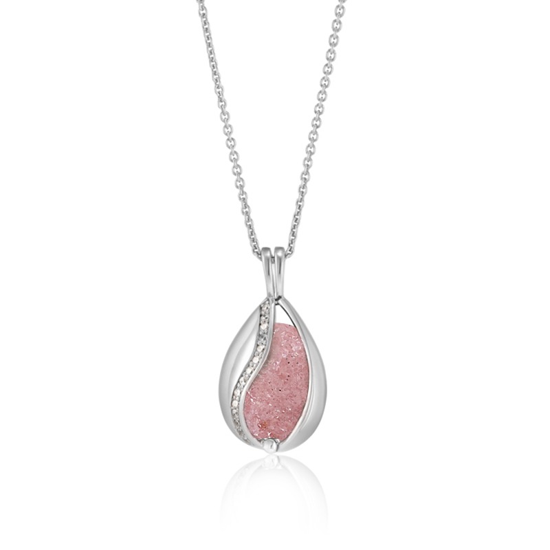 Blank halskæde i sølv med zirkonia og jordbærkvarts. Du kan selv skifte sten i smykket.