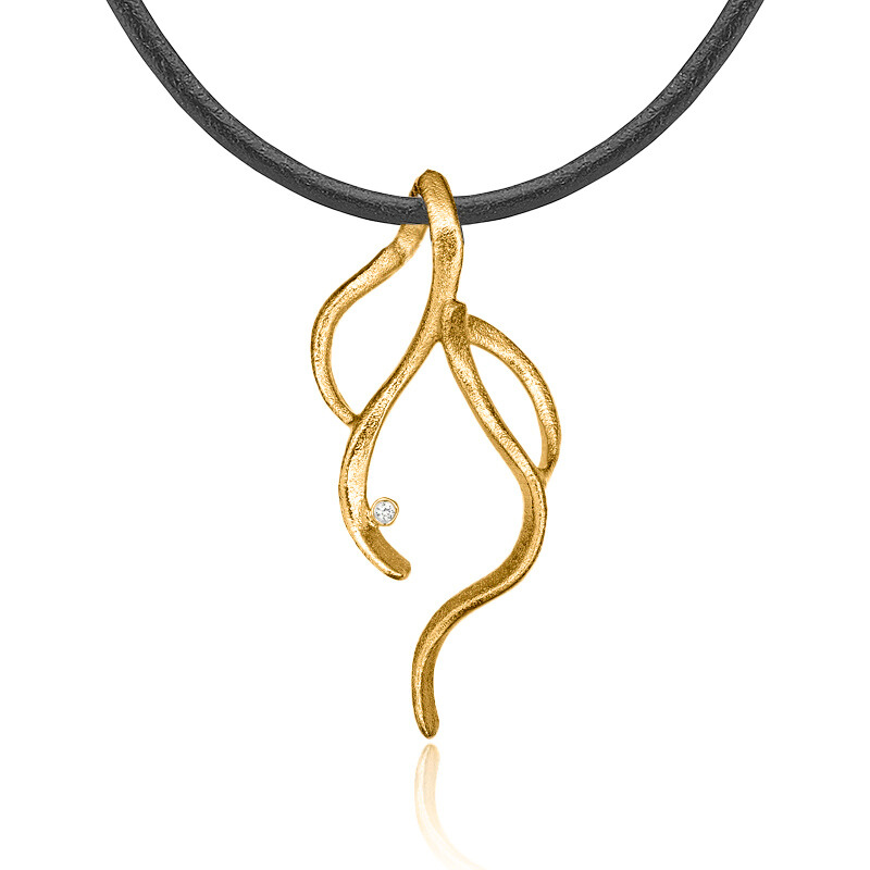Vedhæng med bløde bølger i matteret forgyldt sølv, pyntet med en glimtende zirkonia.
