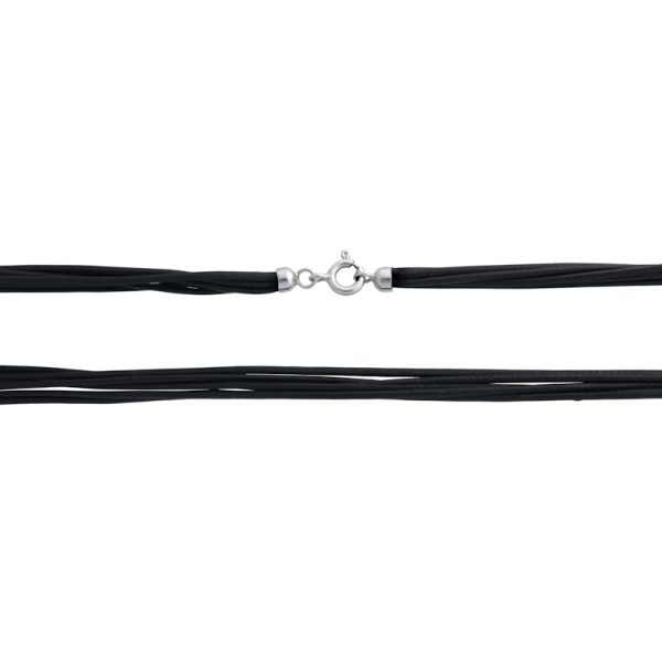 Sort bomuldskæde med 6 snore med forgyldt sølv lås