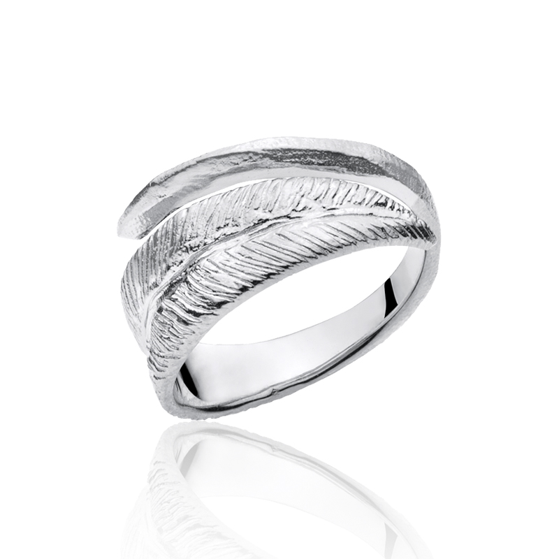 Smuk og unik fjerring i rhodineret sølv med et råt, men feminint udtryk.