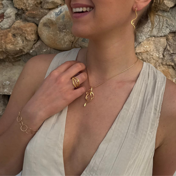 Ring i forgyldt sølv med bølgende former og med smuk zirkonia.