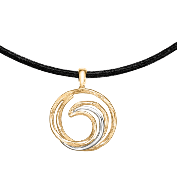 Halssmykke i sølv med 14 karat massiv guld med en kombination af både rød- og hvidguld. Et halssmykke med en skøn struktur i et tidsløst design.