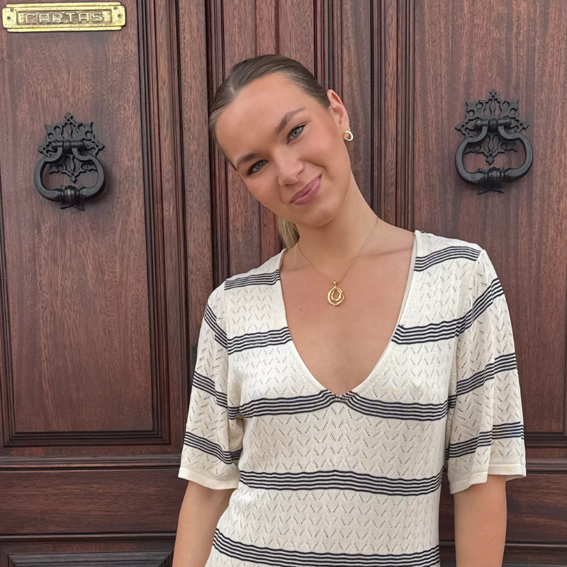 Modellen er en størrelse 34.