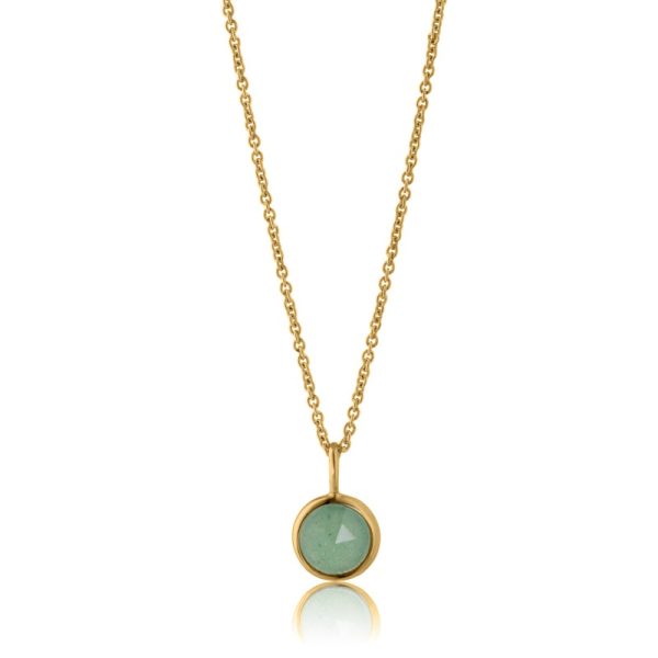 Smukt vedhæng i guldbelagt sølv med en grøn aventurin. Et enkelt og feminint smykke. Vedhænget er ens på begge siden, derfor er smykket også fin i en lang kæde.