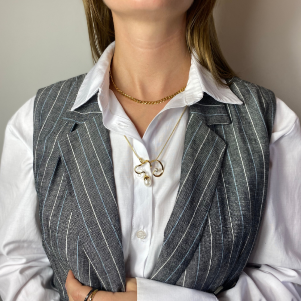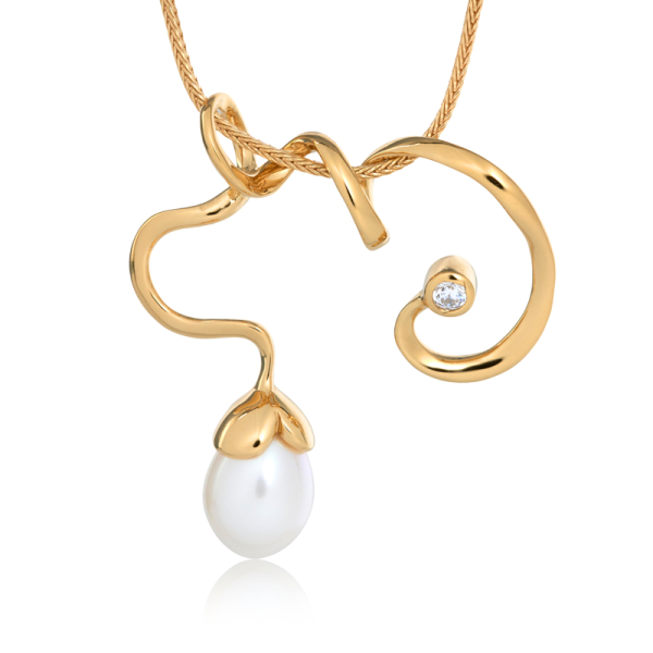 En eventyrligt halssmykke i en skøn organisk form. Smykket er dekoreret med en hvid ferskvandskulturperle og en smuk zirkonia.