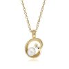Smuk vedhæng i forgyldt sølv med fin zirkonia og smuk hvid ferskvandskulturperle.