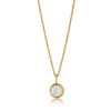 Smukt vedhæng i guldbelagt sølv med hvid perlemor. Et enkelt og feminint smykke. Vedhænget er ens på begge siden, derfor er smykket også fin i en lang kæde.