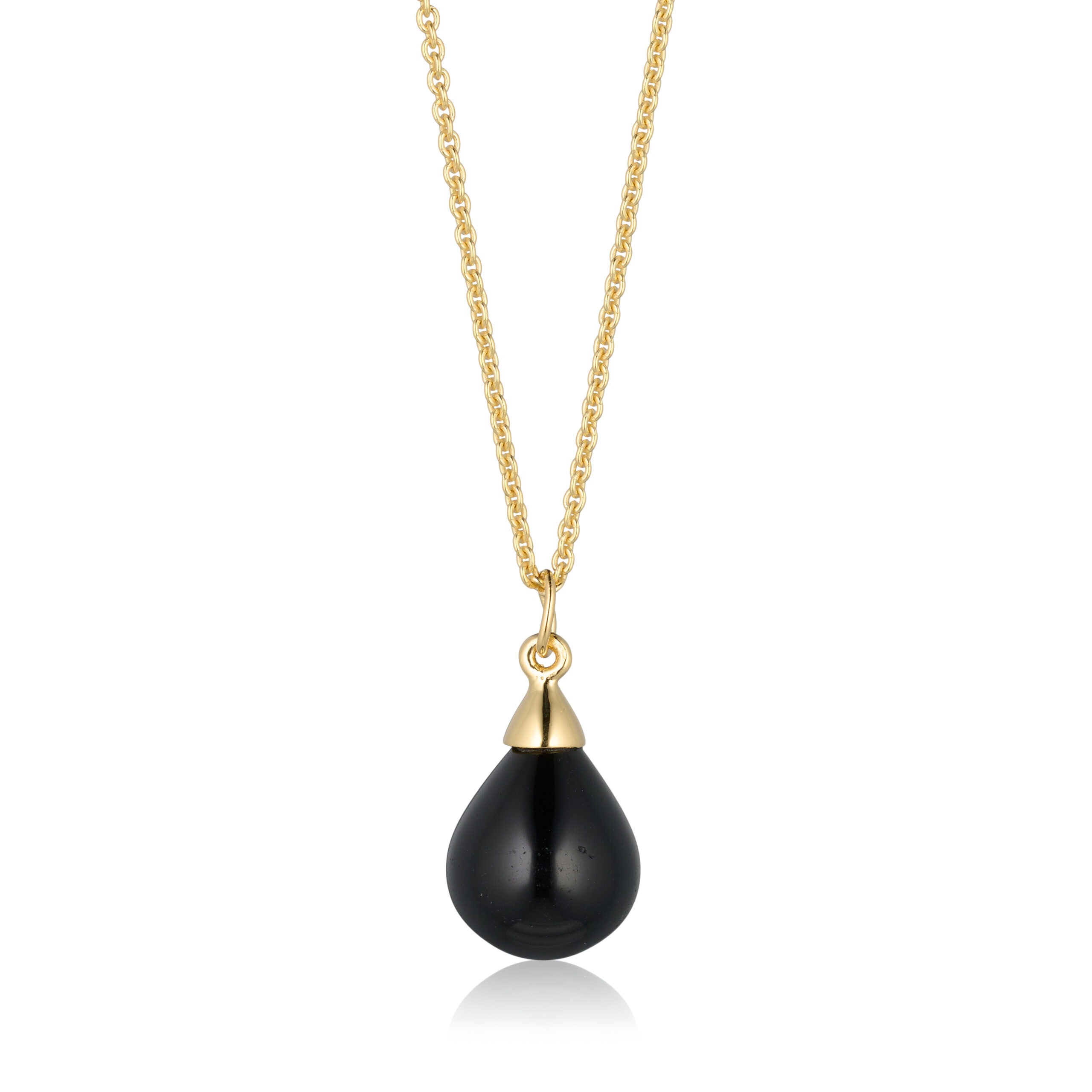 Enkelt og Smukt halssmykke i forgyldt sølv med en smuk Sort Onyx.