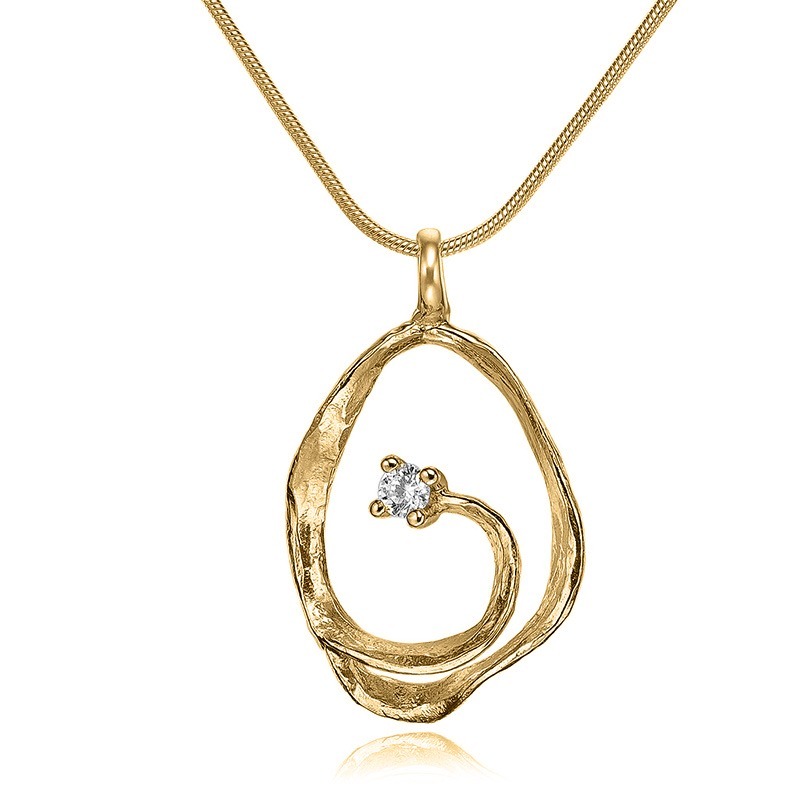 Halssmykke i forgyldt sølv med en skøn struktur, pyntet med en glimtende zirkonia.