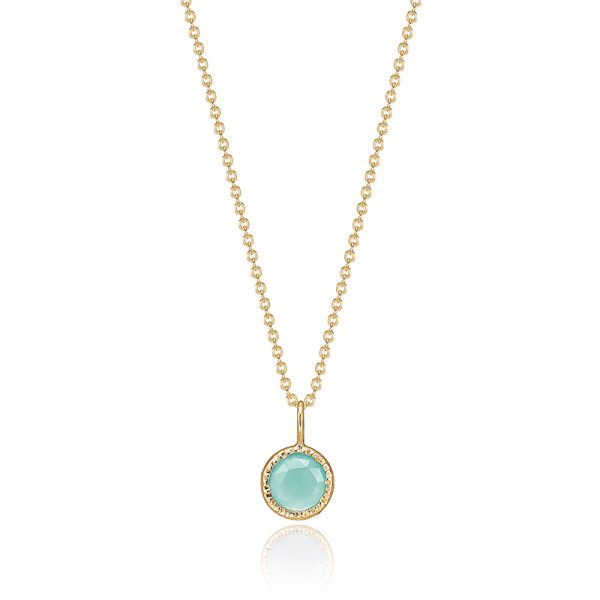 Smukt vedhæng i guldbelagt sølv med aqua calcedon. Et enkelt og feminint smykke.