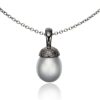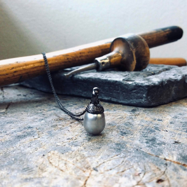 Halssmykke i oxideret sølv med grå perle