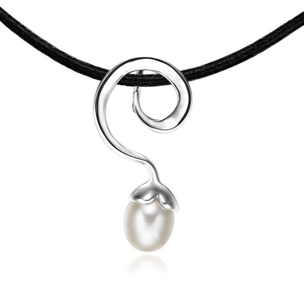 Smuk og eventyrlig spiralformet halssmykke i sølv med en fin hvid ferskvandskulturperle.