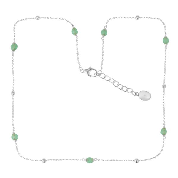 Fin og enkel halskæde i sølv med fine kugler og smukke grønne aventuriner med facetter. Halskæden er 42 cm lang med ekstra 3 cm som forlænger.