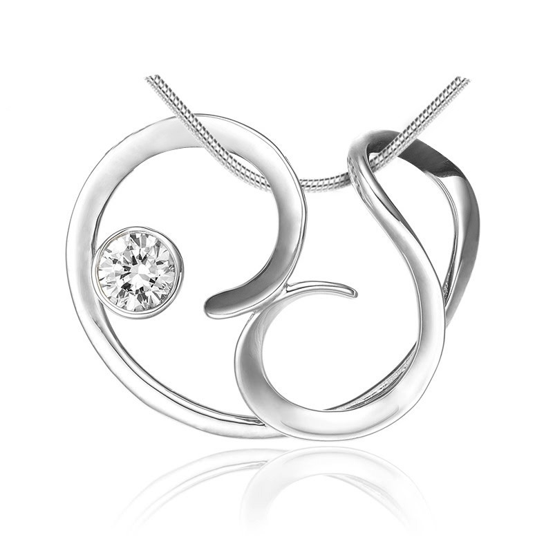 Halskæde i sølv med smuk zirkonia, hvor vedhænget snor sig smukt om kæden.