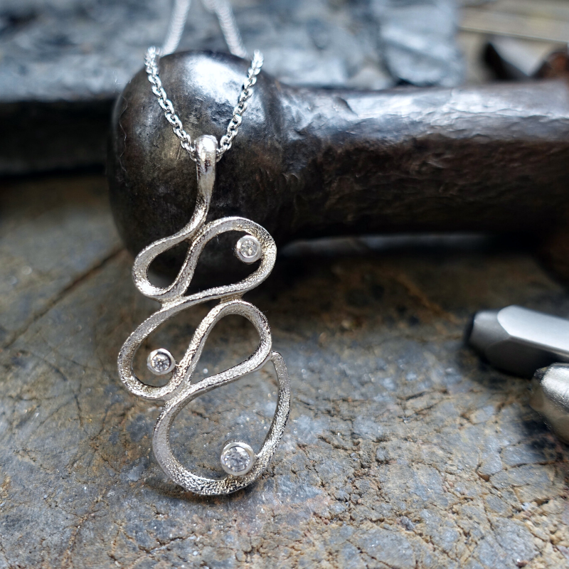 Eksklusivt halssmykke i rhodineret sølv med en skøn struktur og udsmykning af funklende zirkonia.