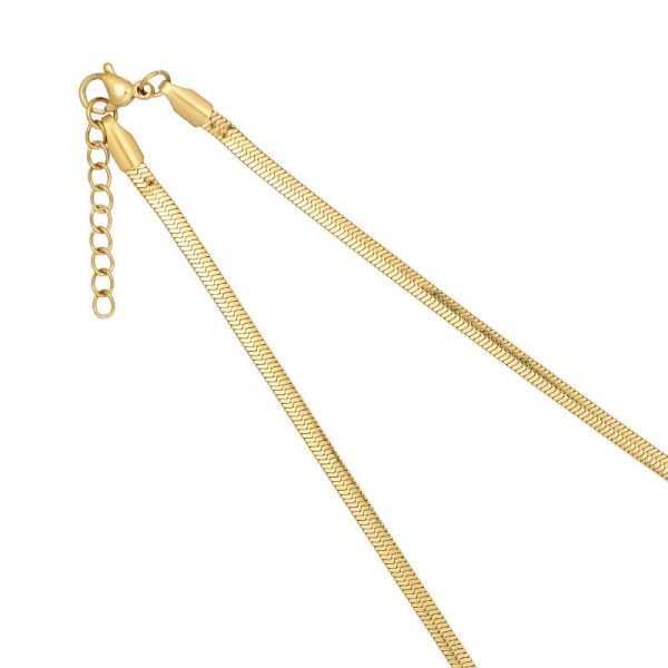 Slangehalskæde i stål, belagt med 14 karat guld, et smukt og klassisk design. Halskæden er 42 cm + 3 cm forlænger.