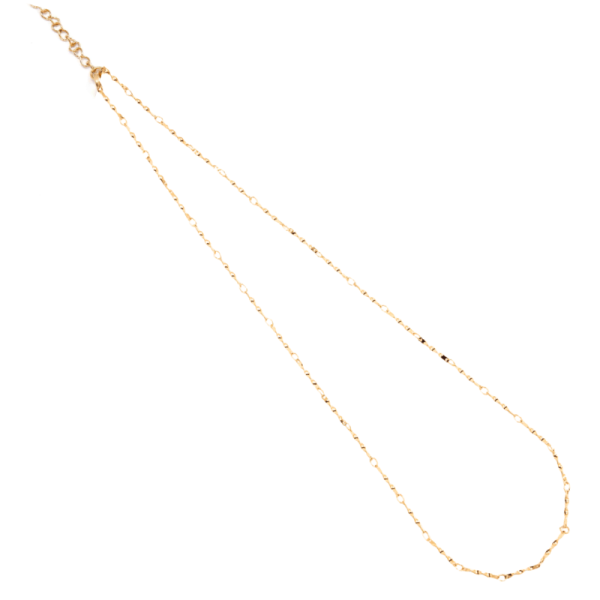 Fin og enkel halskæde i stål, belagt med 14 K guld. Halskæden er 42 cm + 3 cm forlænger.