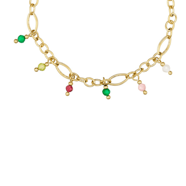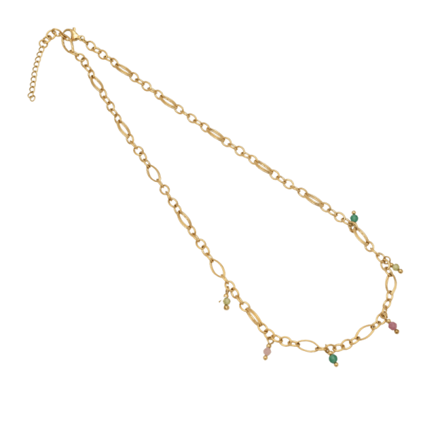 Halskæde med ædelsten i stål, belagt med 14 K guld