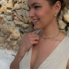 Smuk og feminin halskæde i stål belagt med 14 karat guld og fine ædelsten. Halskæden er 42 cm  + 3 cm forlænger.