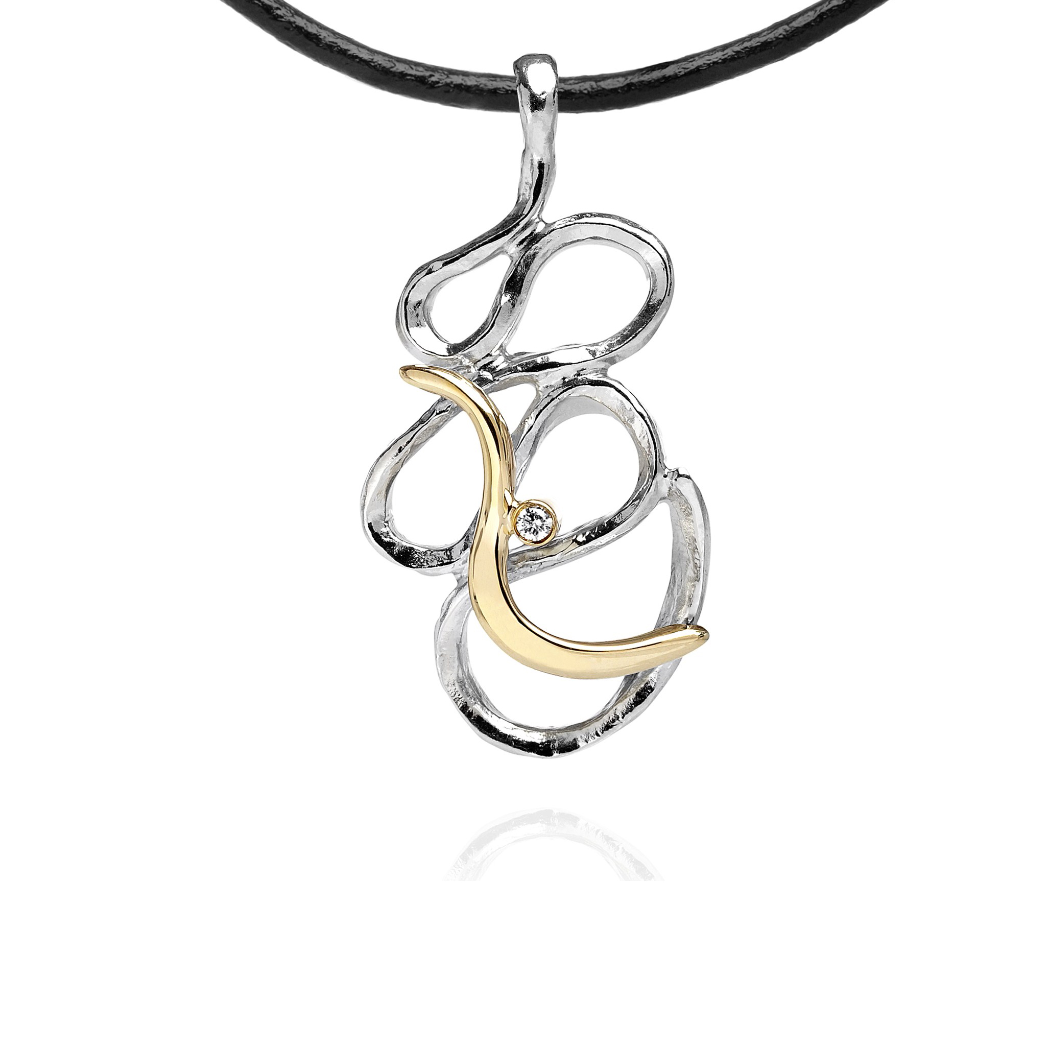 Luksuriøst halssmykke i sølv med 14 karat massiv guldpynt og en smuk 0,03 W/vs brillant. Et kunstværk for livet.