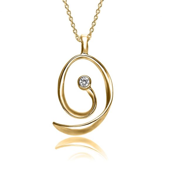 Spiralformet og blankpoleret vedhæng i forgyldt sølv, udsmykket med en smuk zirkonia.