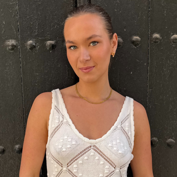 Stålhalskæde, belagt med 14 karat guld, i det klassiske murstensdesign. Halskæden er 42 cm + 3 cm forlænger.