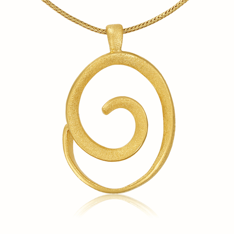 Elegant spiralformet halssmykke i matteret forgyldt sølv og med blanke kanter, der giver smykket et unikt og funklende look.