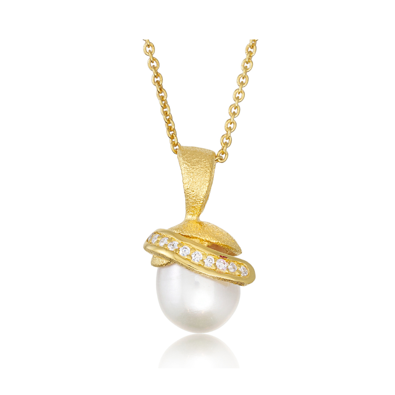 Feminint og let halssmykke med smuk hvid ferskvandskulturperle og skinnende zirkonia.