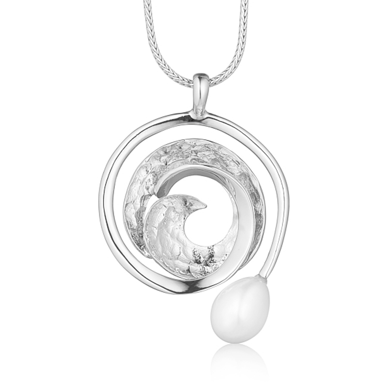 Halssmykke i sterling sølv med en smuk perle. Smykket passer perfekt til den romanstiske pige som ønsker et smykke med lidt ekstra kant.