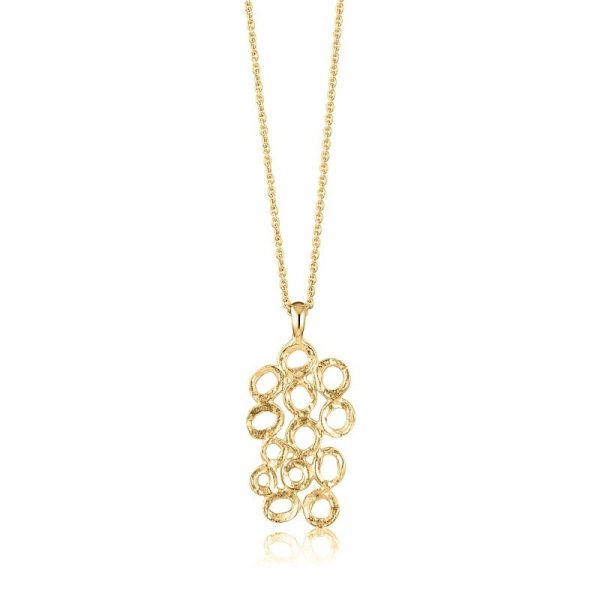 Halssmykke i forgyldt sølv med et net af fine ringe i en rustikt udtryk.