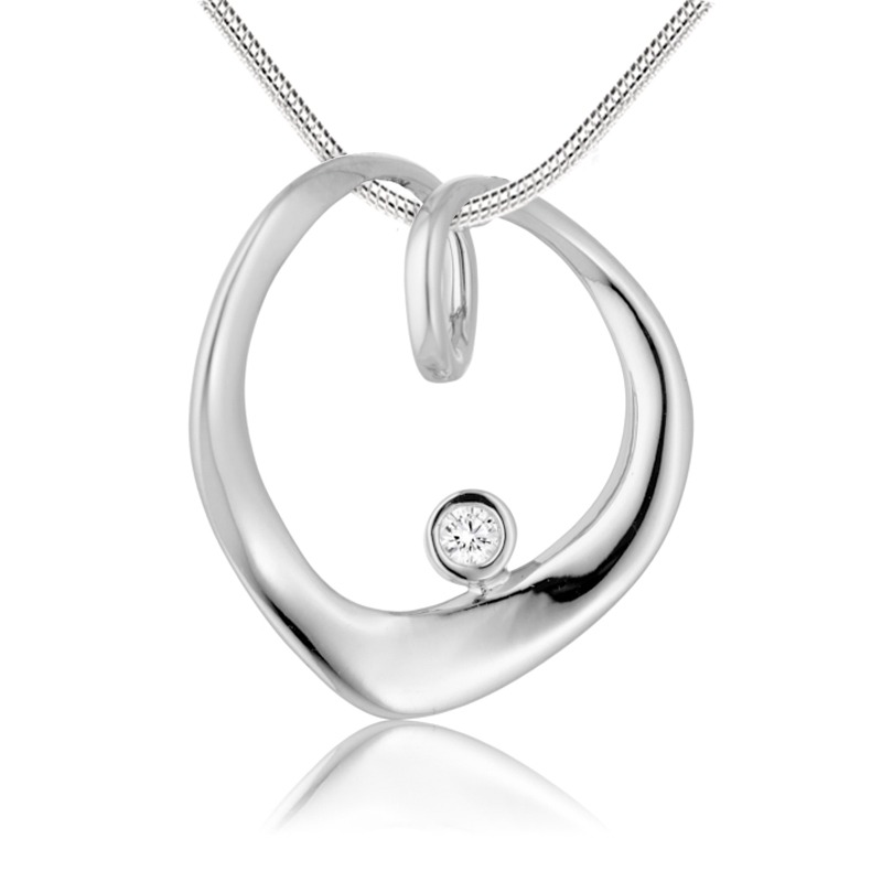 Hjertevedhæng i blankpoleret sølv, udsmykket med en smuk zirkonia.