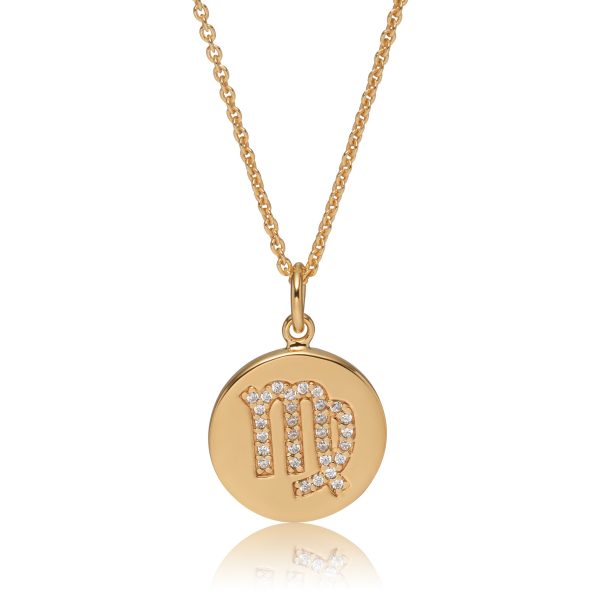 Halssmykke i guldbelagt sølv med Zodiac Stjenetegn. Smykket er håndfattet med 30 zirkonia.