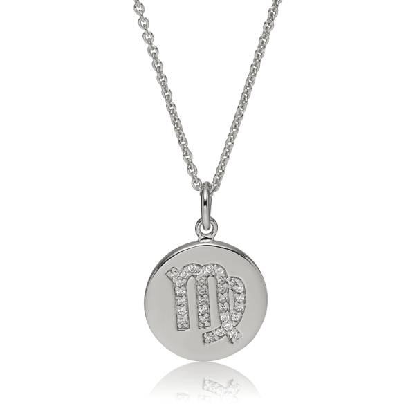 Halssmykke i sølv med Zodiac Stjenetegn. Smykket er håndfattet med 30 zirkonia.