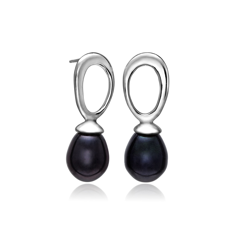 Øreringe i sølv med sort perle