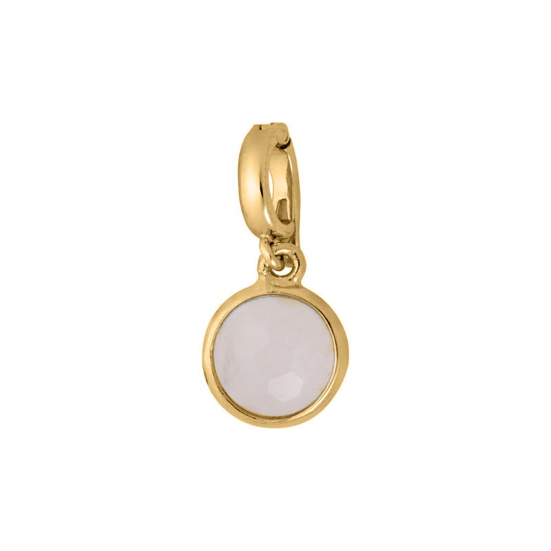 Smuk klips i forgyldt sølv med rosakvarts, som kan sættes på dit armbånd eller på din halskæde. Stenen og fatning er ens på begge sider.