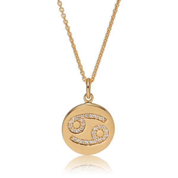 Halssmykke i guldbelagt sølv med Zodiac Stjenetegn. Smykket er håndfattet med 24 zirkonia.