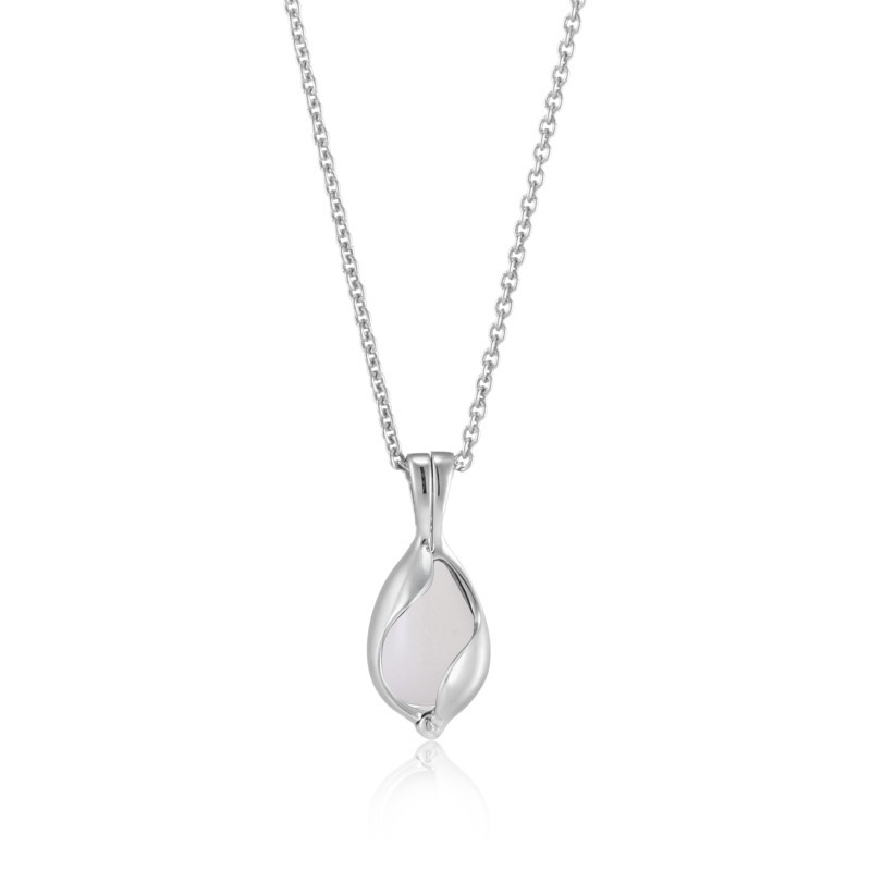 Halssmykke i blankpoleret sølv med hvid agat. Du kan selv skifte sten i smykket.