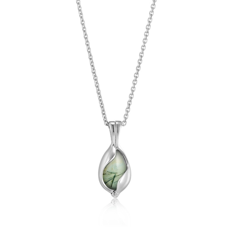 Halskæde i sølv med blankpoleret overflade og med en smuk prehnit. Du kan selv skifte sten i halskæden.