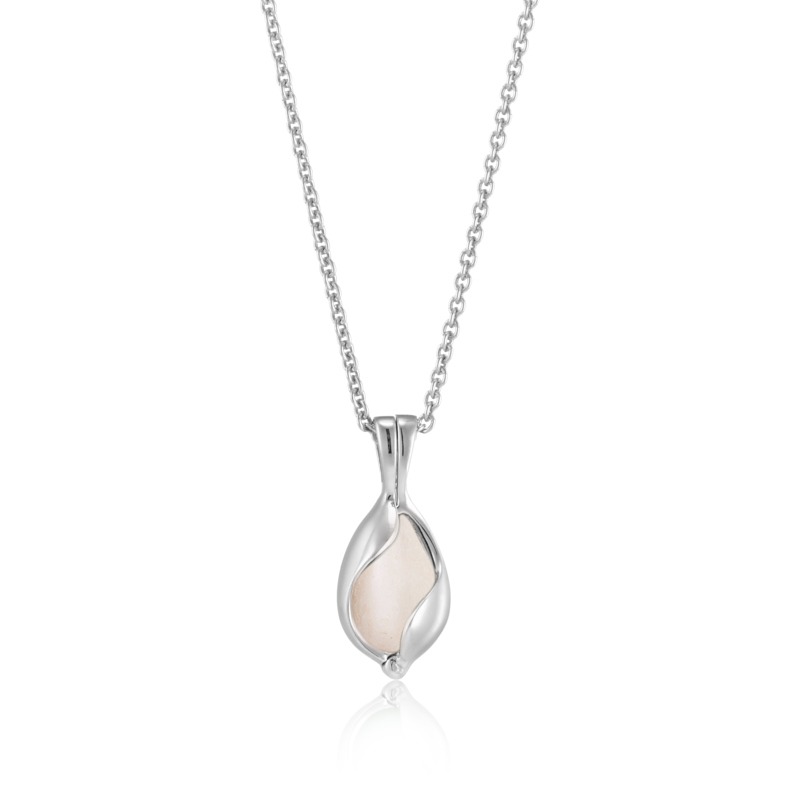 Halskæde i poleret blankt sølv med hvid snekvarts. Du kan selv skifte sten i smykket.