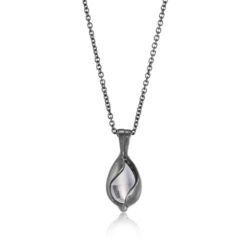 Halskæde i oxideret sølv med fin bjergkrystal. Du kan selv skifte sten i halskæden.