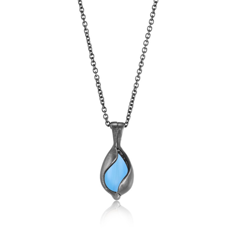 Smart halskæde i oxideret sølv med blå onyx. Du kan nemt selv skifte sten.