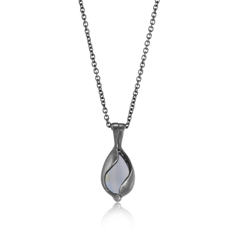 Halskæde i oxideret sølv med fin grå-blå agat. Du kan nemt selv skifte sten i halskæden.